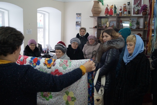 9 ноября в селе Спасское прошел зональный семинар ветеранов пенсионного фонда Российской Федерации по Нижегородской области. По окончанию торжественной части представители районов посетили Центр развития народных промыслов и туризма. Экскурсию по Центру гостям провела директор МБУК "ЦРНПиТ" Бунегина Екатерина Александровна. Она рассказала о работе кружков на базе Центра, о возрождении народных промыслов в Спасском районе, поделилась планами на будущее.