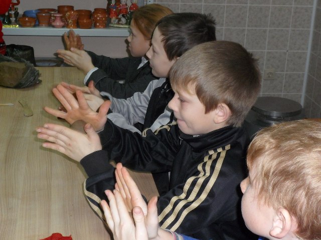 Возгласами восхищения , от увиденных глиняных изделий, началась встреча с детьми из Высокоосельской школы.