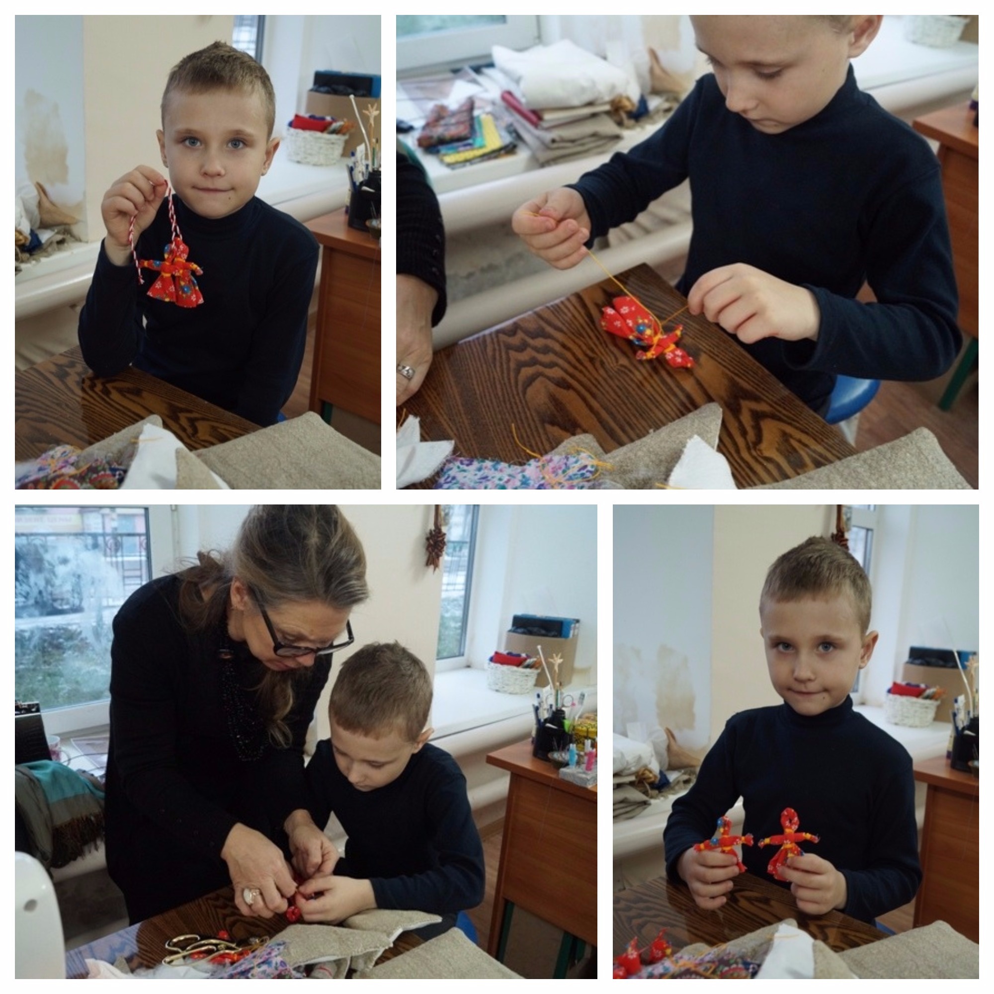 Куколку Кувадку , с помощью мастера, в подарок маме и сестренке делал мальчик Саша.