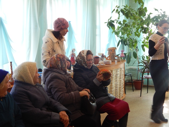 Первых гостей выставки группу отдыхающих комплексного центра социального обслуживания населения радушно встретила директор музея Кутьина Е.П.. Она рассказала о истории народного костюма, о гончарном ремесле нашего района.