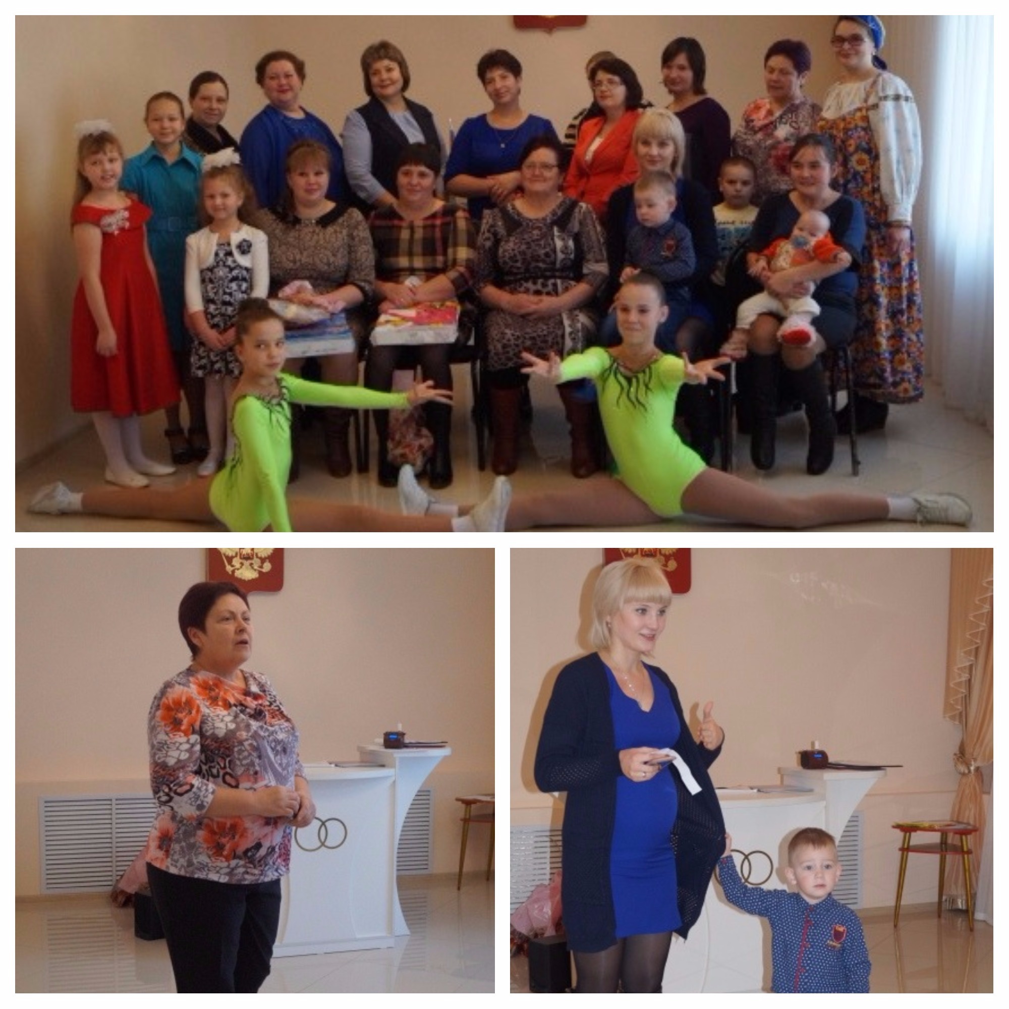 С поздравительными словами выступили начальник отдела ЗАГСа Спасского района Подлесова Наталья Михайловна и начальник отдела предоставления мер социальной поддержки управления Социальной защиты населения Спасского района Нижегородской области Попова Вера Юрьевна. Также все мамочки получили ценные подарки от главного управления ЗАГС Нижегородской области и от администрации Спасского района.